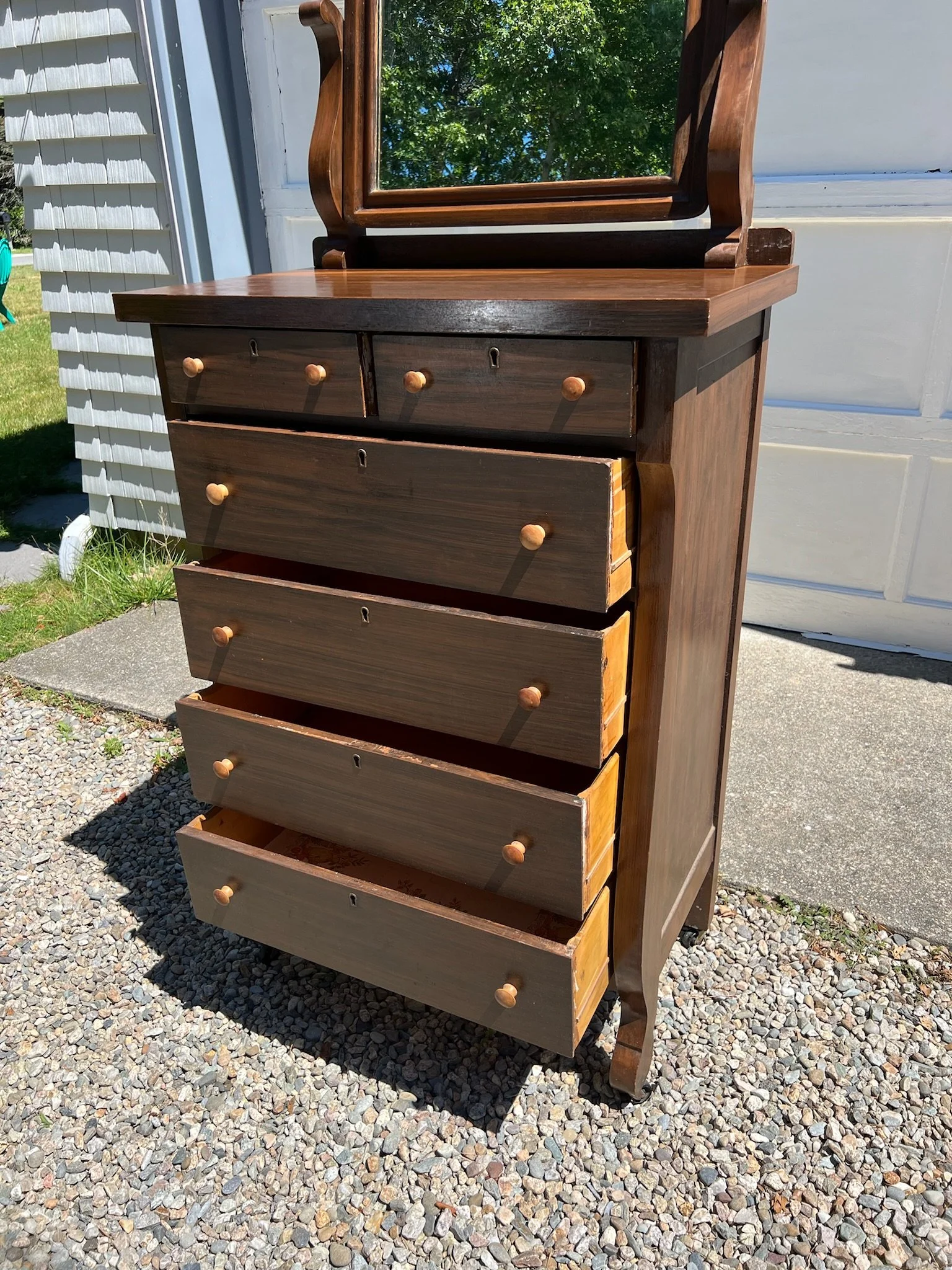 Measurements 33 inches wide, 19 inches deep, 49 inches tall. The mirror is 22 1/2 inches tall.