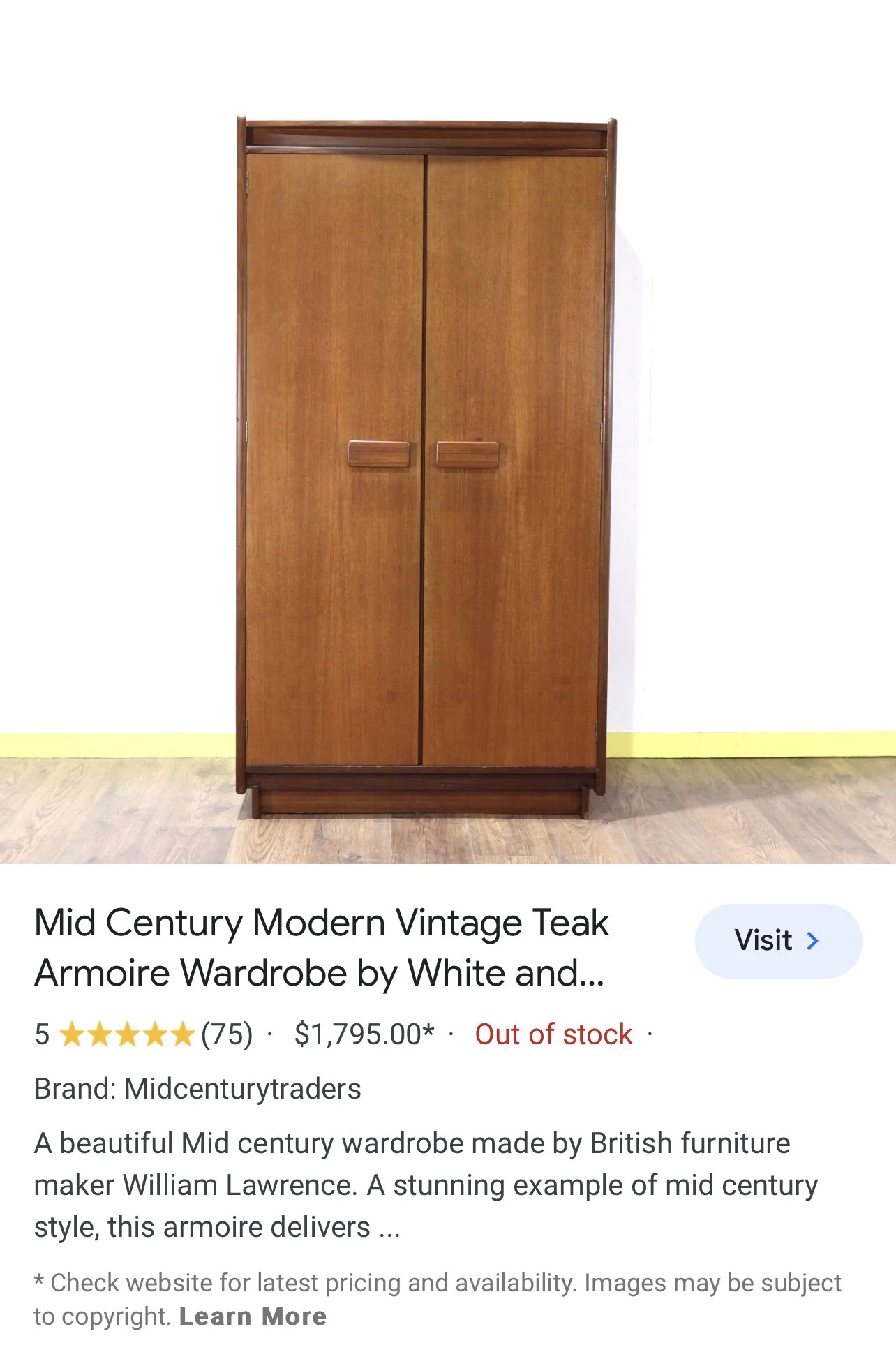 Identical, armoire sold for $1,795 online on Etsy.
